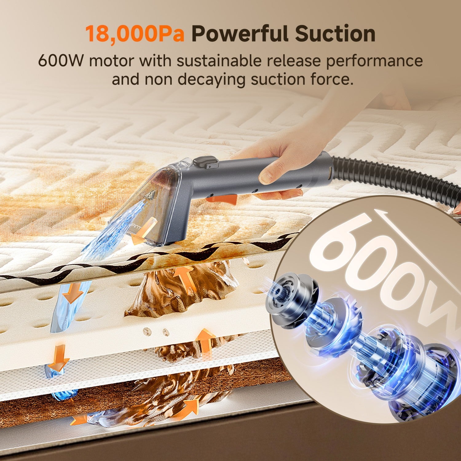 Upgrade 18Kpa Powerful Suction: The 18Kpa spot cleaner can make residual stains invisible, leaving no dirt in any dead corner. Improve cleaning efficiency by 50% compared with 15Kpa, which can make carpet dry faster without bad smell.