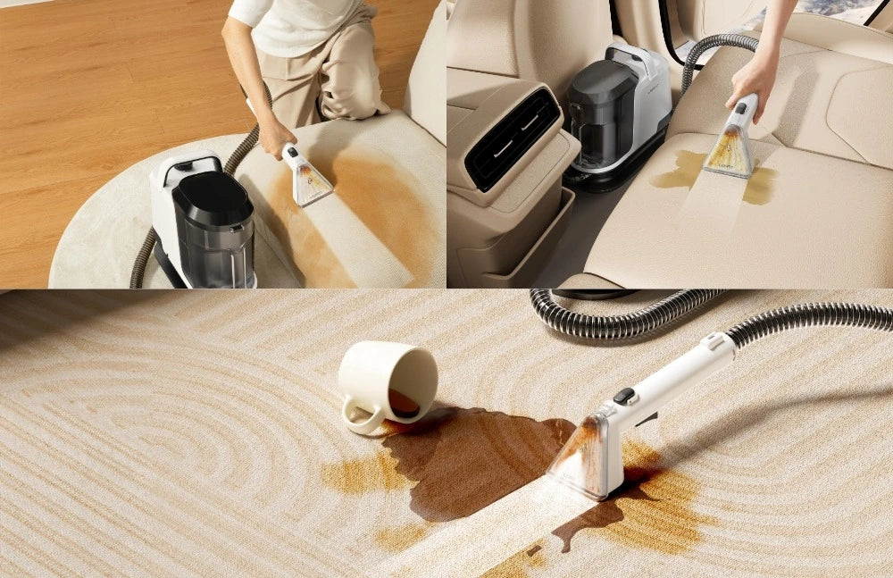 Not Only Carpet Cleaner: Spray, scrub, and suction to remove embedded dirt and stains for furniture, car interior, pets bed and mattress, also you can clean anywhere just as you want on the textile surface.